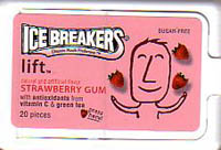 You know what's bothering me? Gum nowadays. I've got Icebreakers "Lift" Strawberry gum, bought it mainly because the art on it is adorable (glasses!), and it actually tastes really good! But it's like Skittles gum... Of course, nothing can ever top the tastiness of Skittles gum, but they can tie for fastest disappearing!